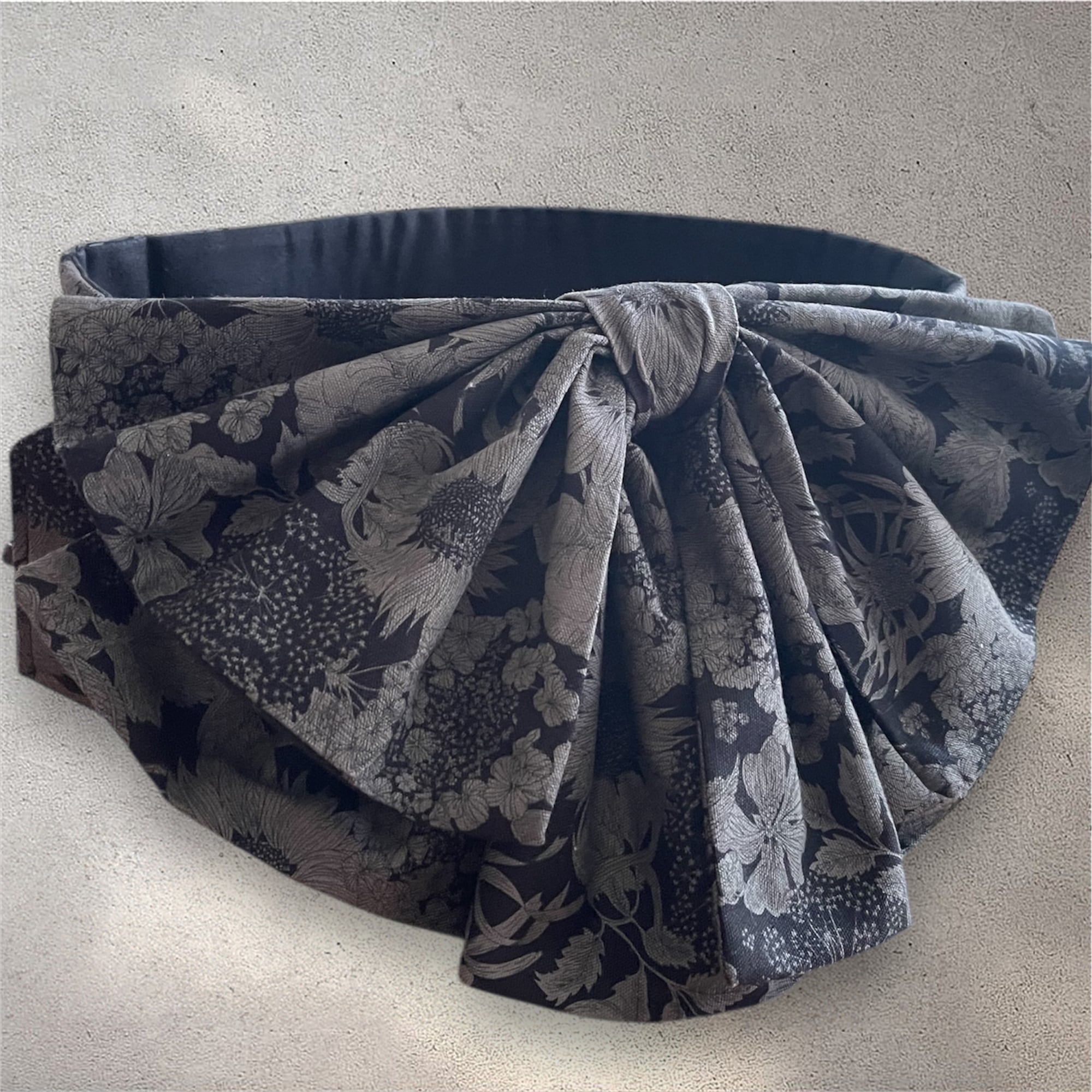 有名なリバティオックスプリント生地を使用した帯ベルトは美しい細やかな花が描かれており現代的なデザインに仕上がりました。