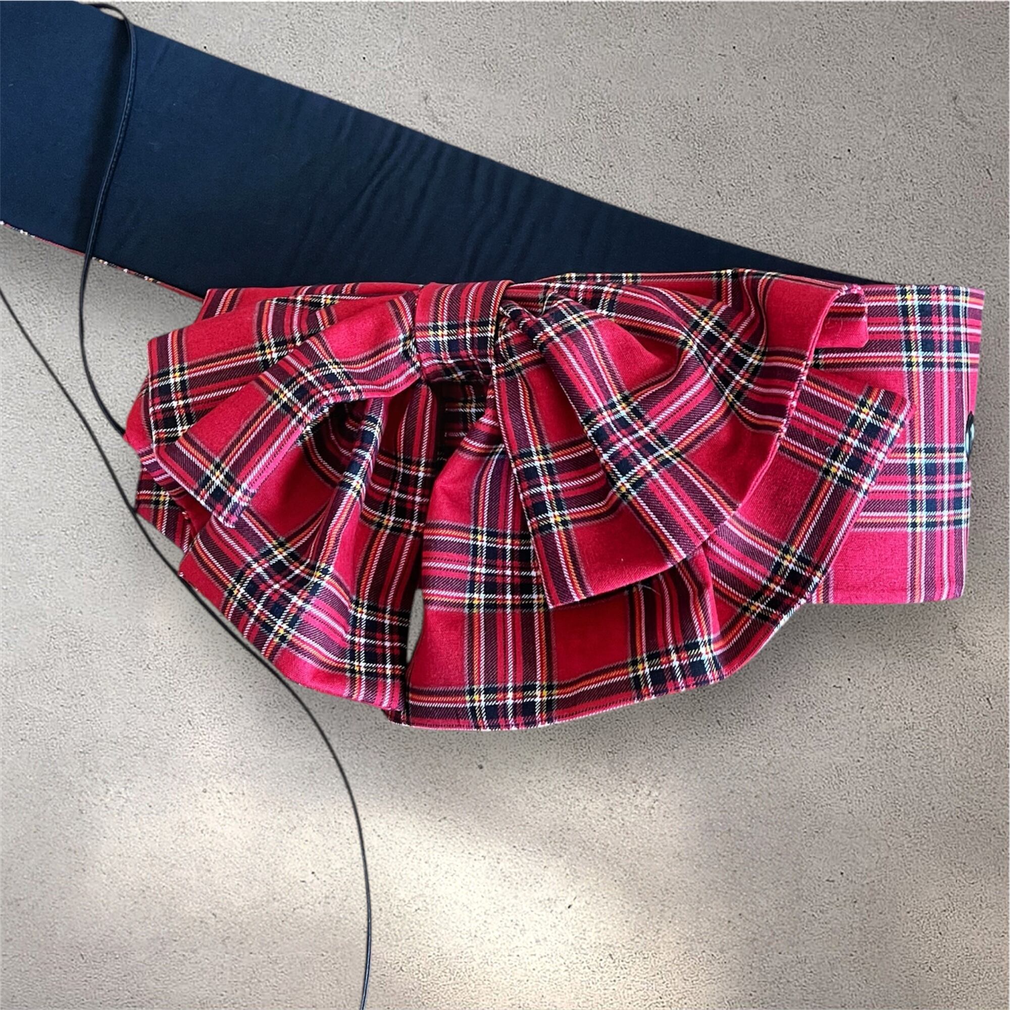 クラシックなタータンチェック柄生地を使用した帯ベルトは、伝統的なスコットランド風の格子模様が美しく、トラッドで温かみのある現代的なデザインに仕上がりました。 色味もシックで大人っぽく、和洋折衷どんな装いでも合わせれる万能な柄行。