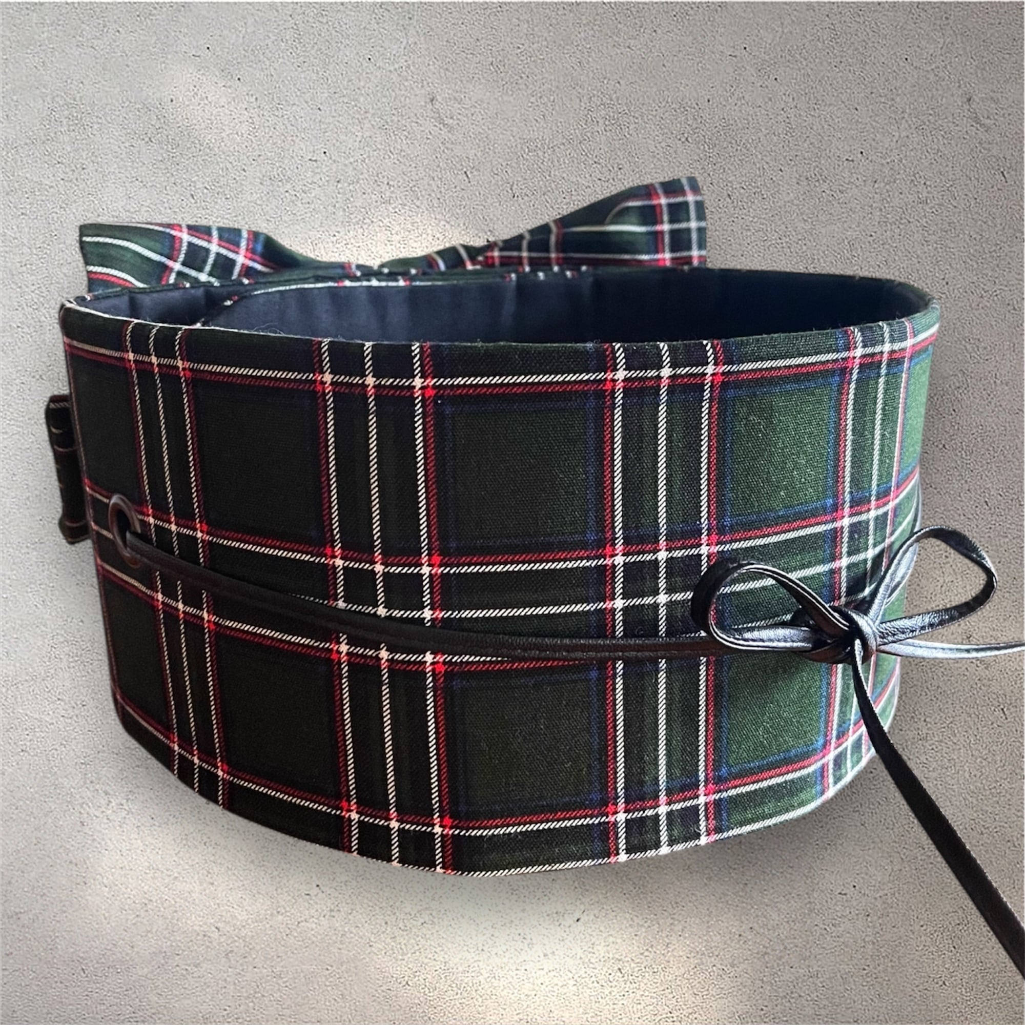 クラシックなタータンチェック柄生地を使用した帯ベルトは、伝統的なスコットランド風の格子模様が美しく、トラッドで温かみのある現代的なデザインに仕上がりました。 色味もシックで大人っぽく、和洋折衷どんな装いでも合わせれる万能な柄行。