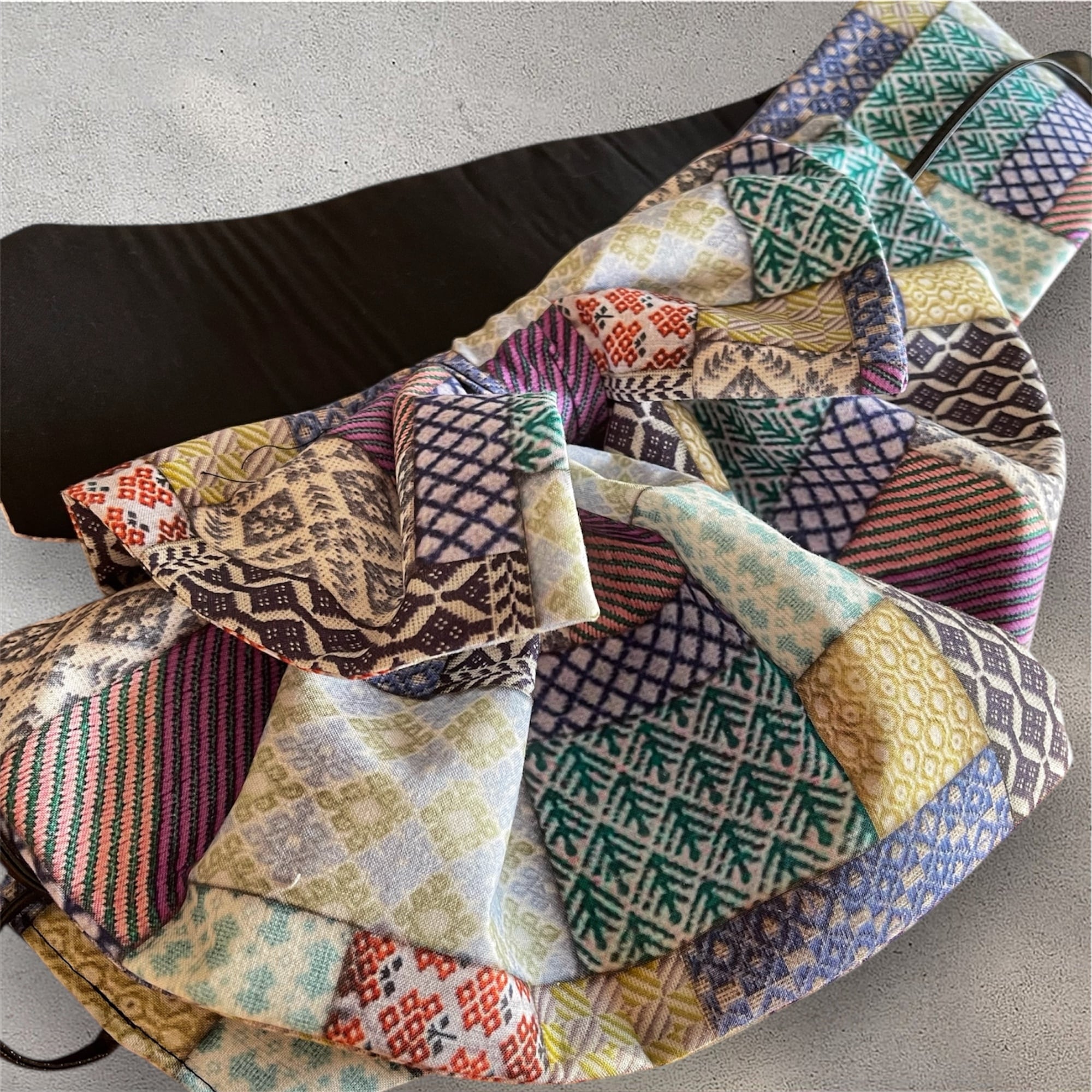 こぎんざしがパッチワーク調に描かれた柄は、色彩豊かで可愛いく、どこにもない唯一無二の帯ベルトに仕上がりました。