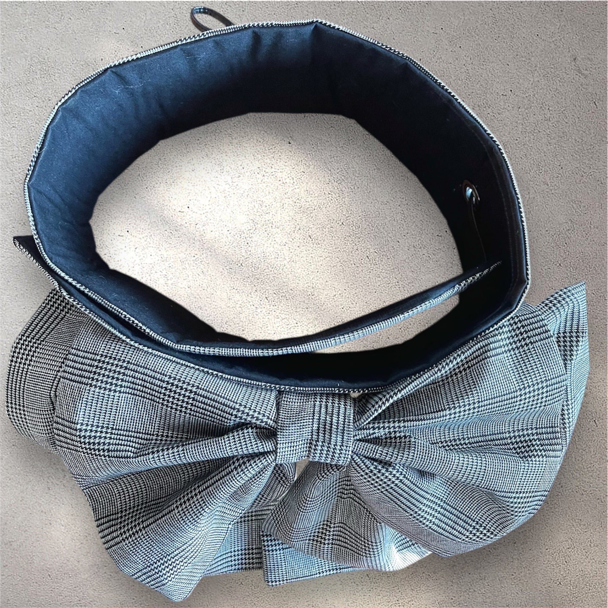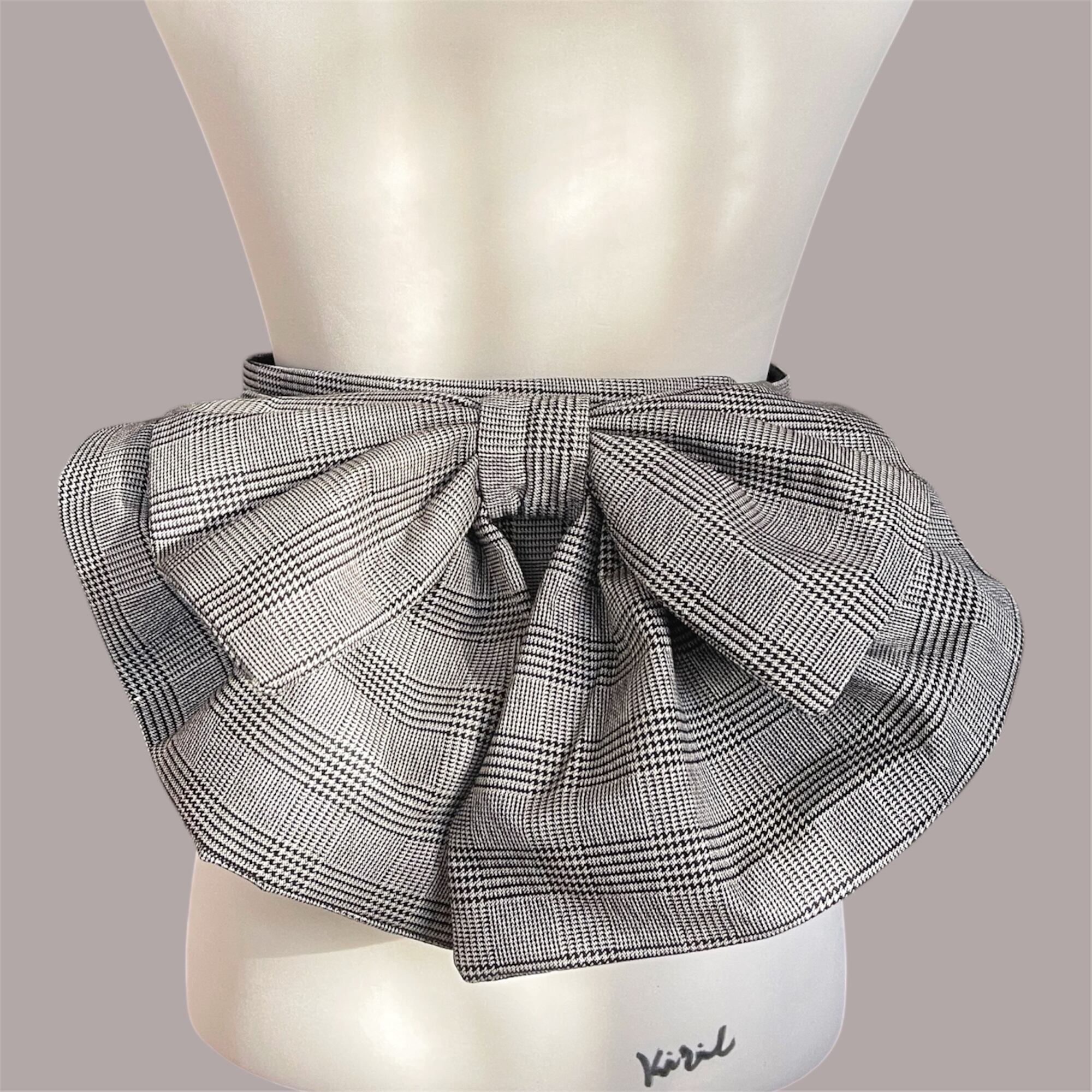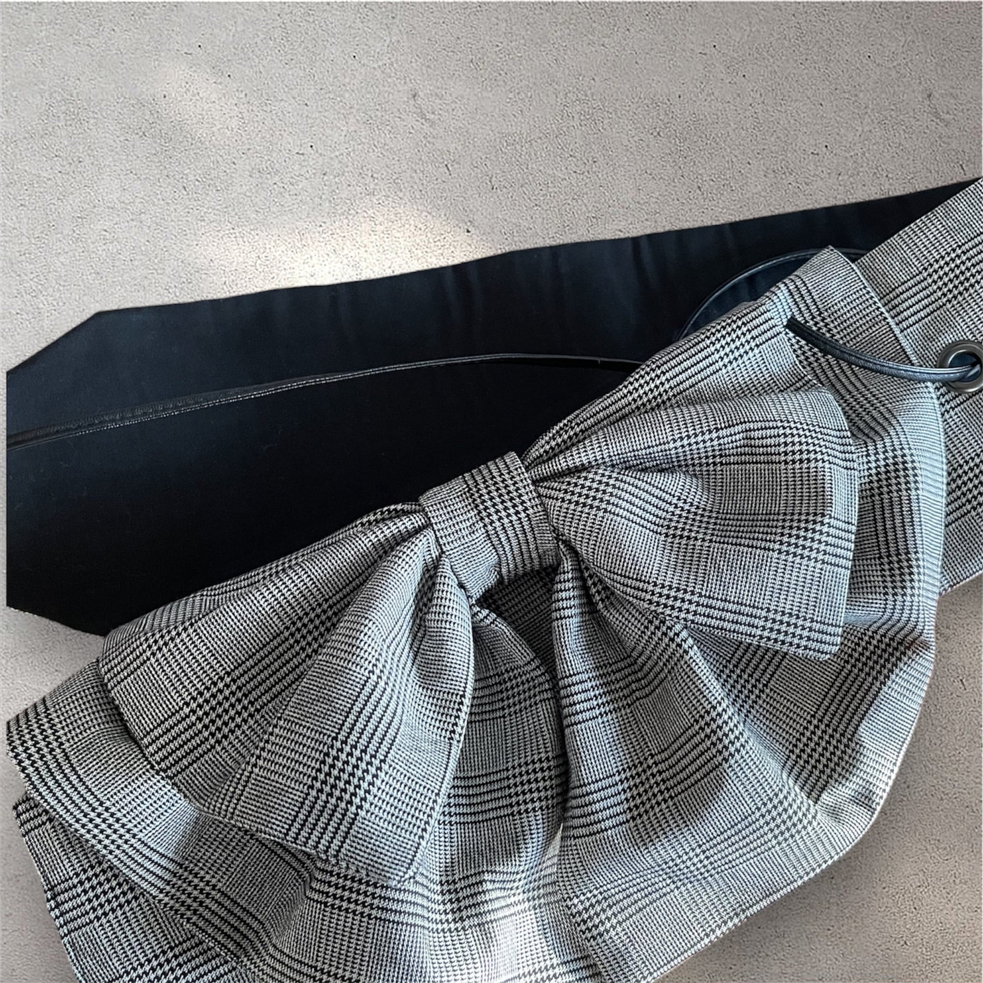 帯ベルトのリボン部分は、あらかじめリボン型に形作られたデザインとなっております。 リボンの形とバランスを保つため、帯に2か所縫い留めておりますので、強く引っ張ったり無理な力を加えたりしますと破損の原因となります。