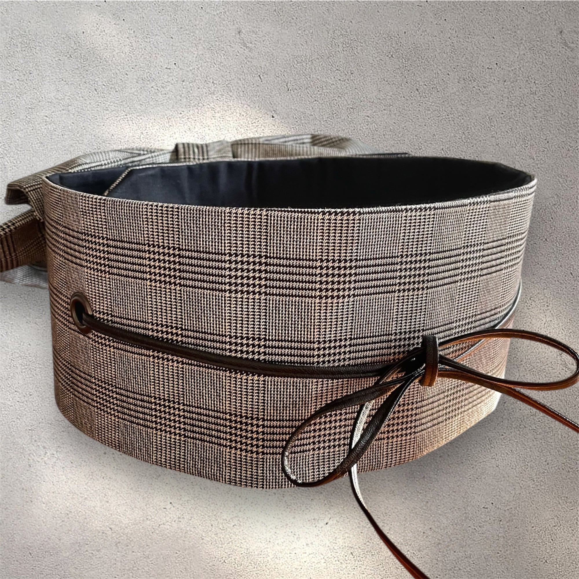 柔らかく、でも程よく厚みがあり、しっかりとした特別芯地入りで形が決まりやすく、体にフィット。 ウエスト周りをすっきり見せてくれるのもポイント。細いコードの紐がアクセントとなり、結び目にさりげない個性を演出します。