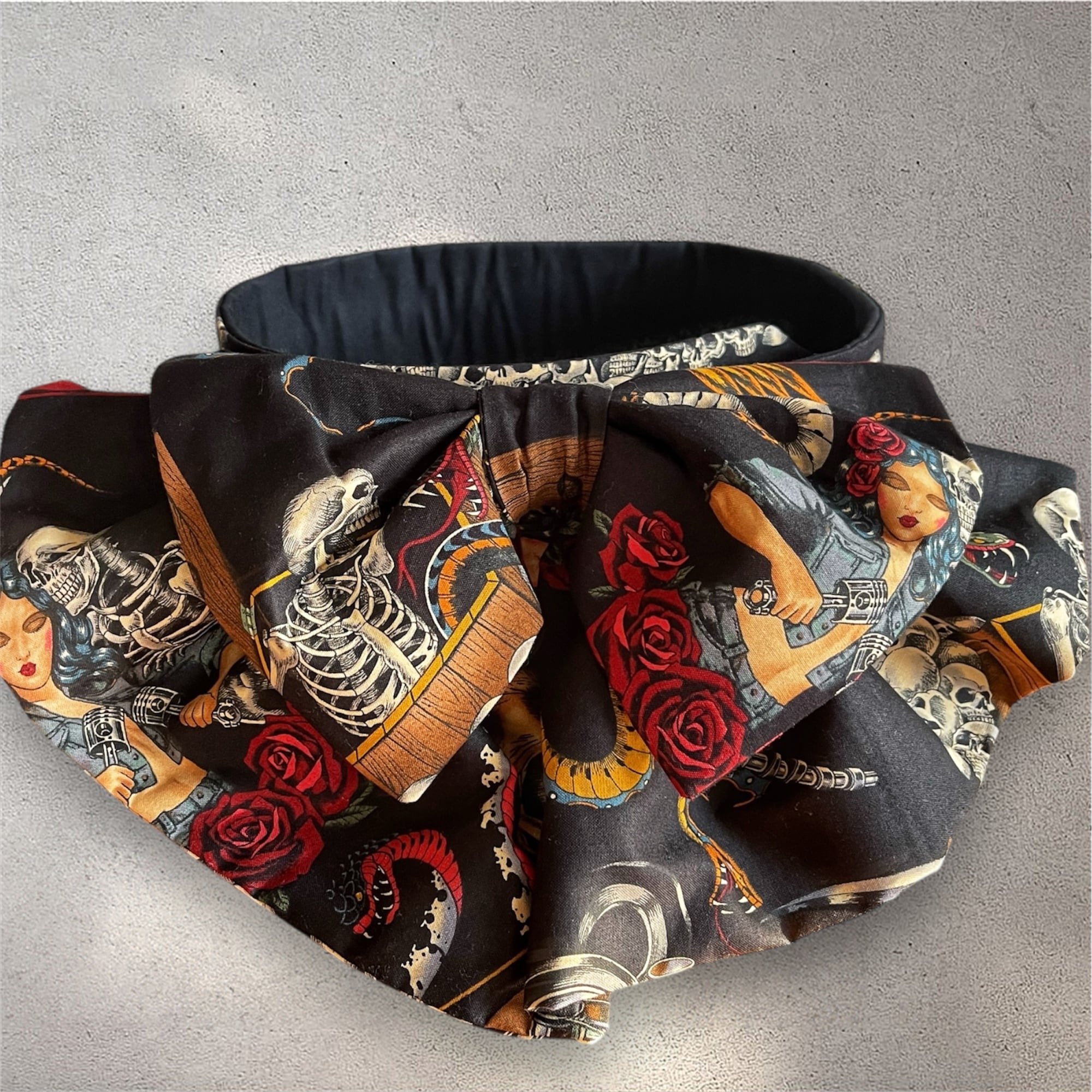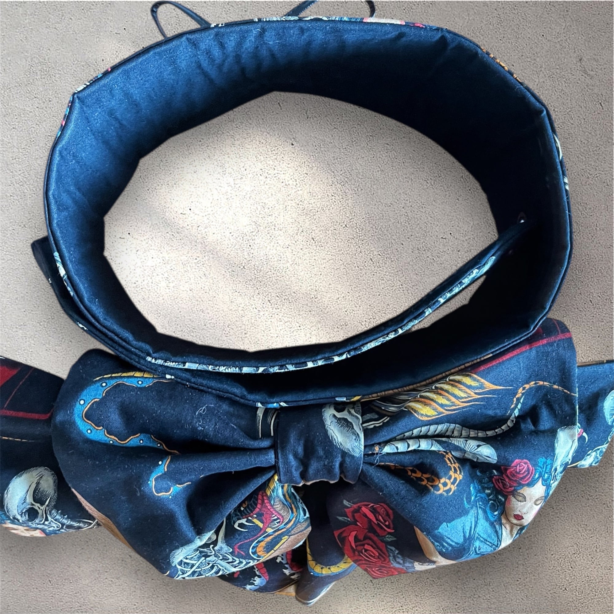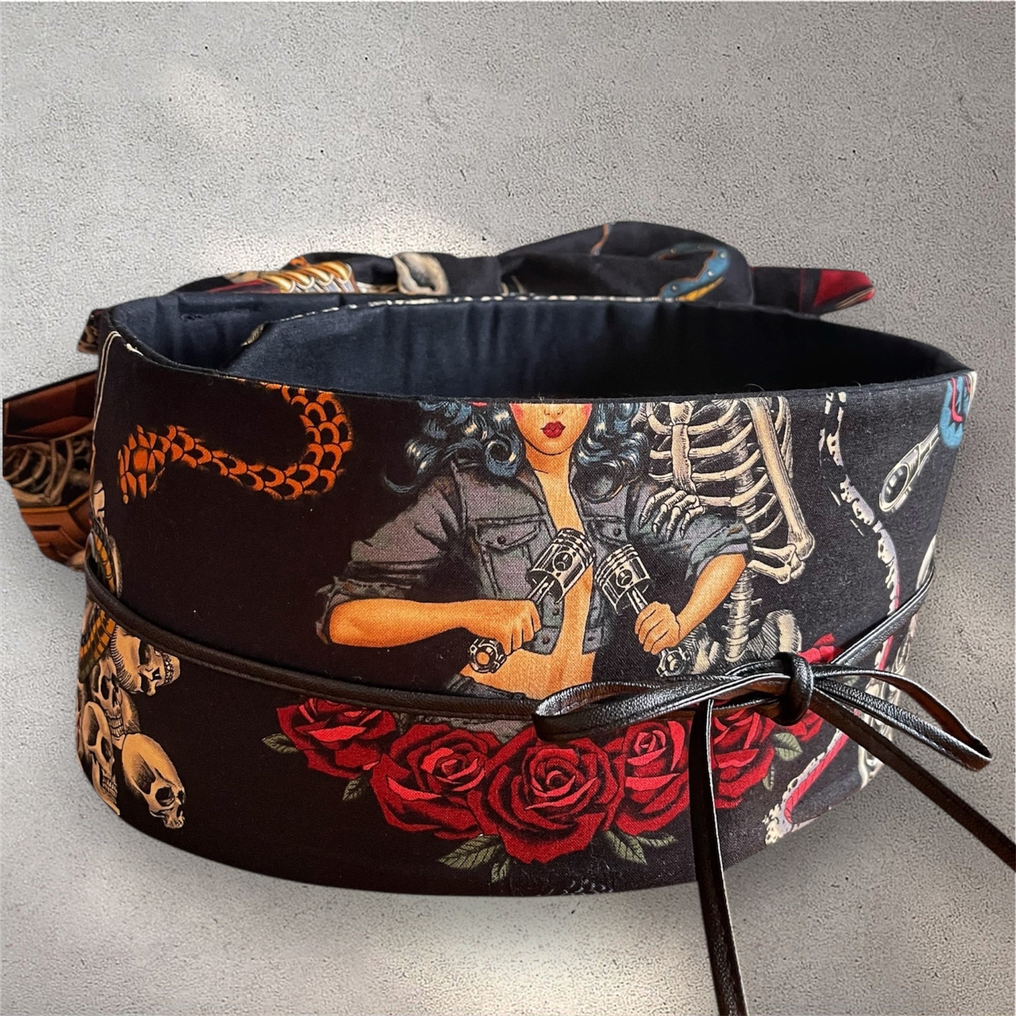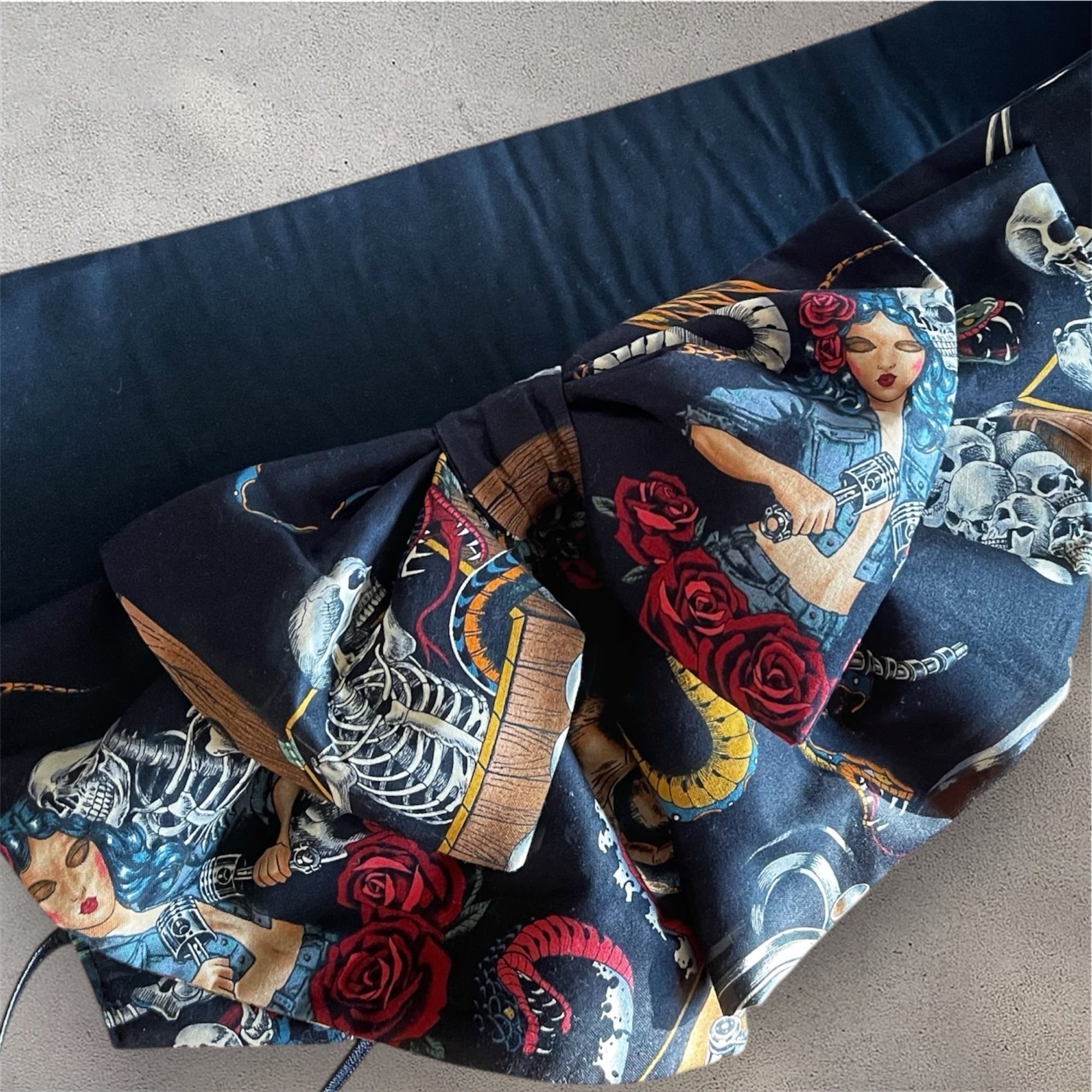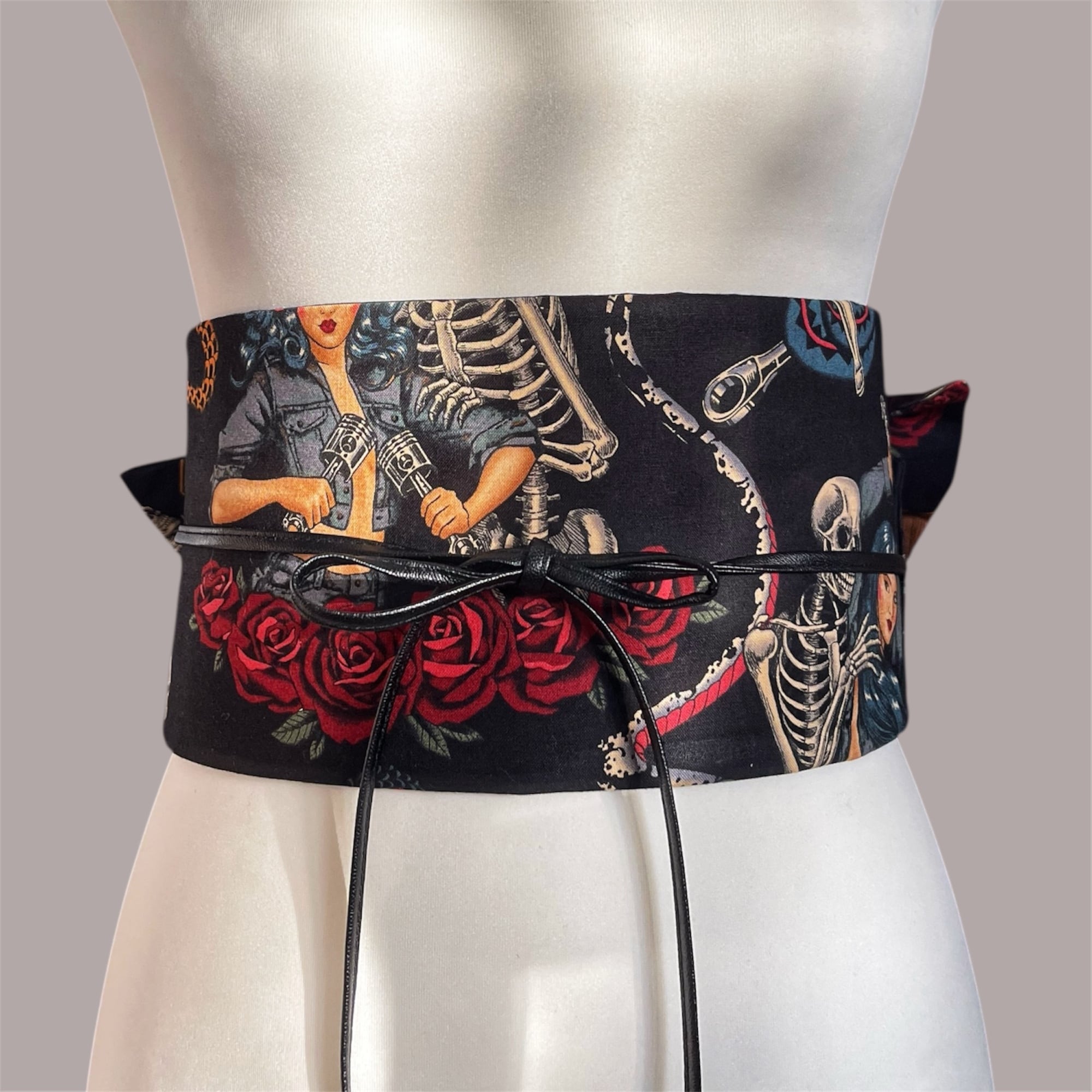 アメリカの個性派ブランド、アレキサンダー・ヘンリーデザインのプリント生地、『denim &demon』を使った帯ベルト。