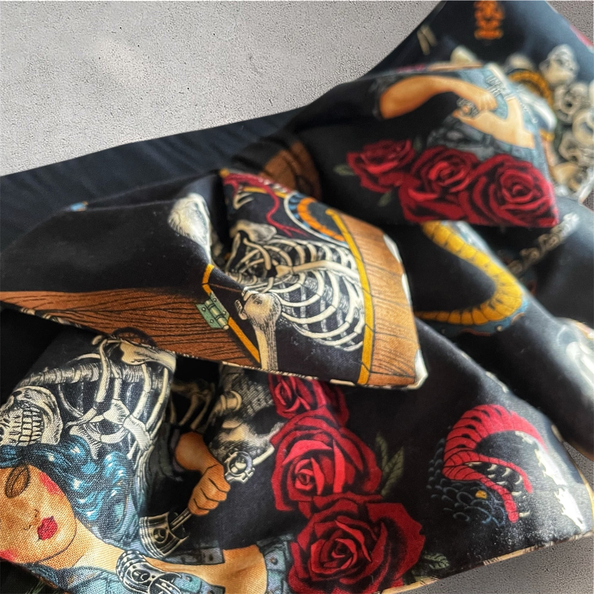 ハードな絵柄がcoolでかっこよく、不思議なことに着物にもしっくりくるおしゃれな帯ベルトに仕上がりました。