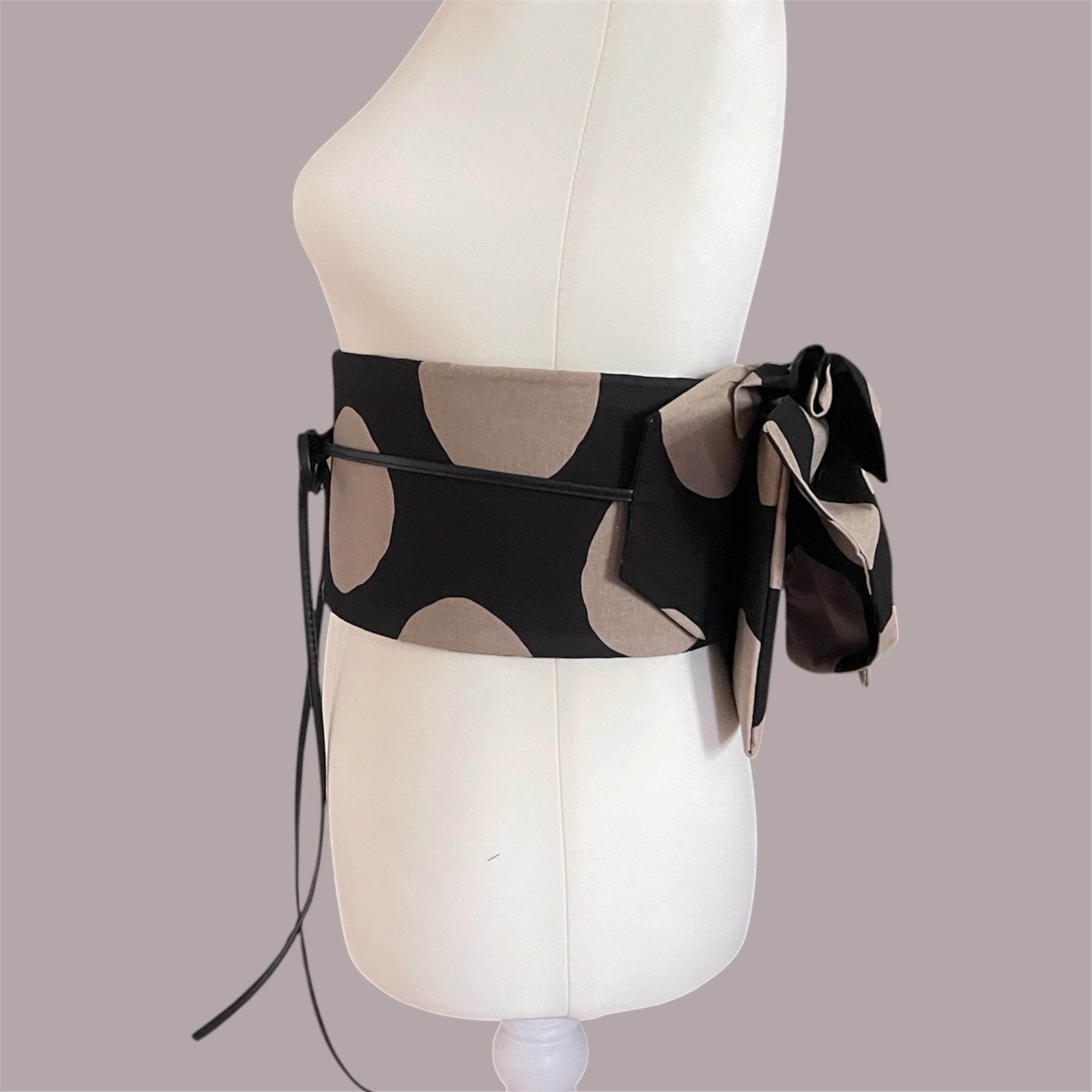 デザイン性と実用性を兼ね備えた日常に馴染む新しい帯のかたち。 パタパタデザインのポーチ付き結衣帯(大きめドットkun)