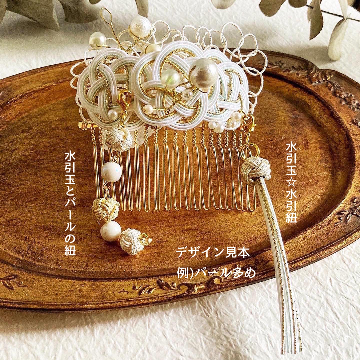 ◼️水引和装ヘアアクセサリー◾️白ゴールド☆ブライダル☆留袖ー受注制作ー