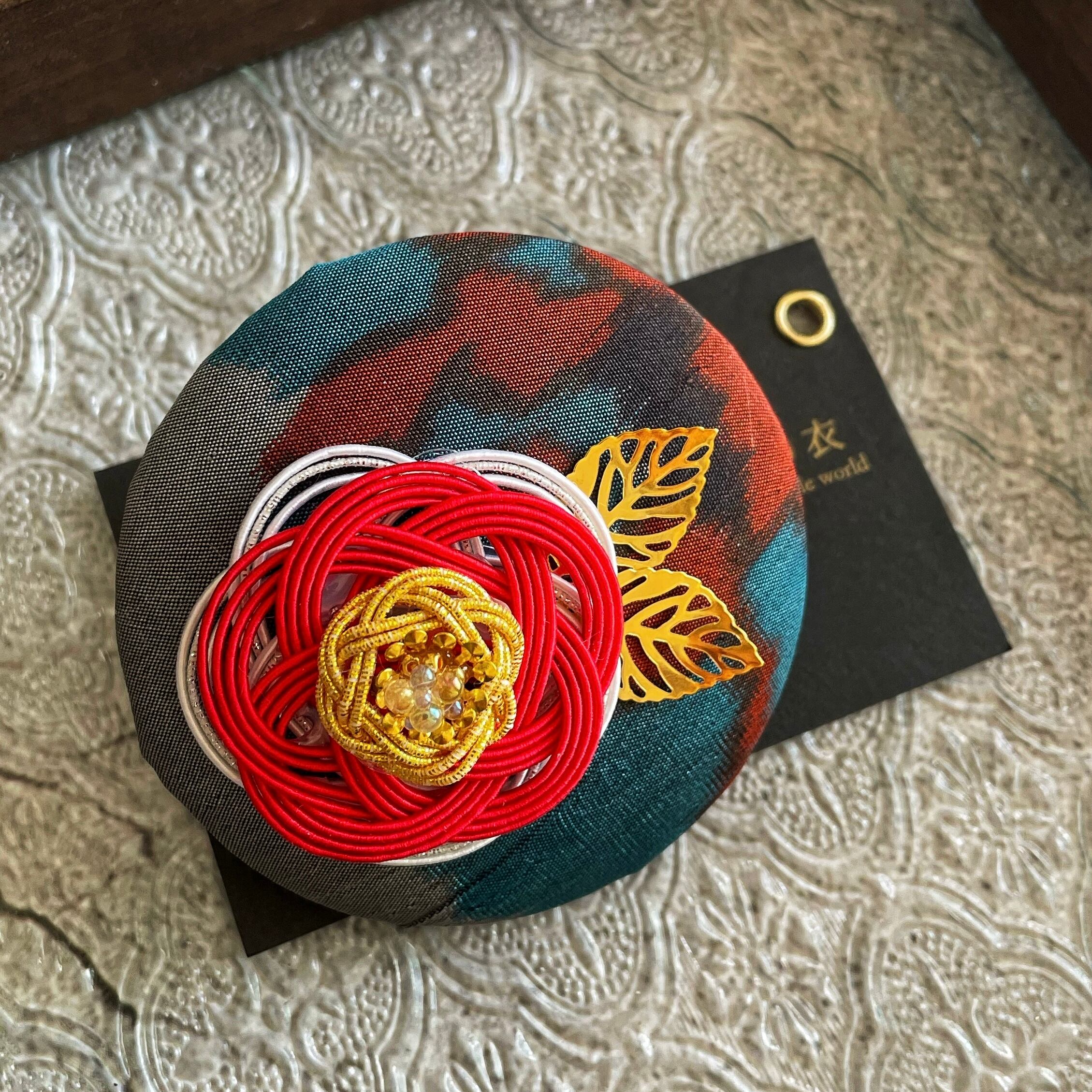 大正浪漫⭐︎紅色椿姫⭐︎ヘアピンブローチは、アンティーク着物生地を使用し大正浪漫をイメージした個性的なアクセサリーです。