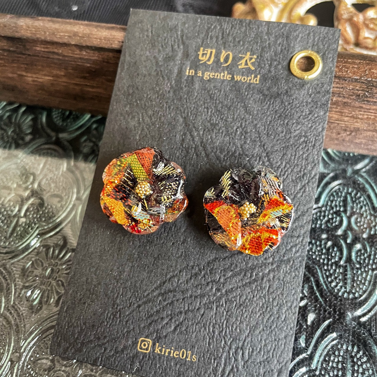 アンティーク帯obiピアス⭐︎花園