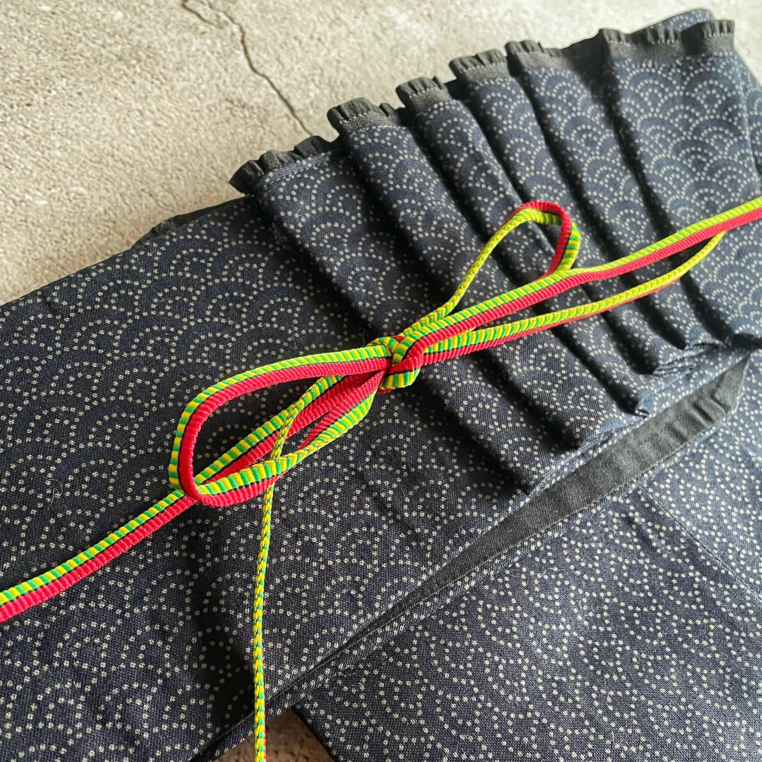 こちらは古典柄の縁起の良いとされる青海波柄模様の紺色(こきはなだ)の帯ベルトです。